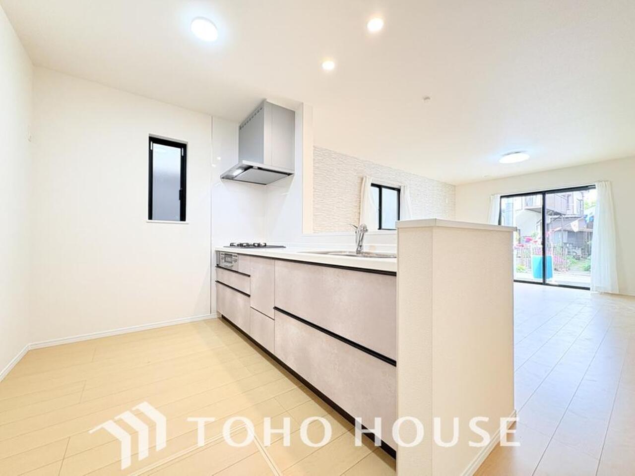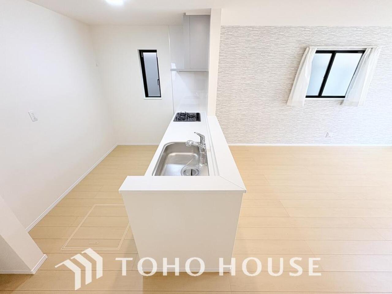 家族みんなでゆったりと調理や食事の準備ができる十分な広さを確保した、快適なキッチンスペース。