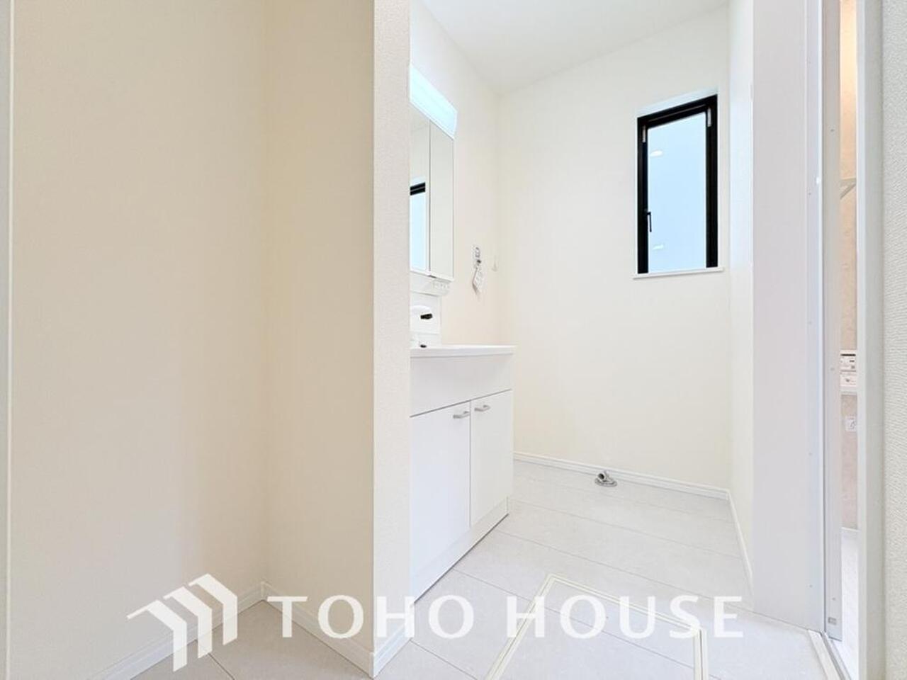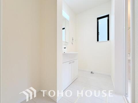 身だしなみのチェックがしやすい大きな鏡、下には収納がたっぷり。スッキリとした空間を演出いたします。