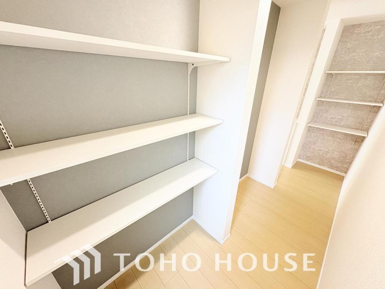 キッチン裏にはパントリーを完備。ついつい買いすぎてしまった日用品や食料品のストックなどに。