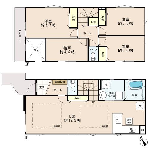 | 設備 | 都市ガス/東京電力/公営水道/下水排水/インターホンTV/フローリング/システムキッチン/対面キッチン/浴室換気乾燥機/床下収納/床暖房/駐車場2台/ペアガラス/24時間換気システム/免震構造/耐震構造/浄水器/トイレ2ヶ所/オートバス/バス1坪以上/吹抜/リビングダイニング15畳以上/小学校まで1km以内/全居室フローリング/リビング階段/LDK20畳以上/浴室に窓/南西向き/納戸/小学校徒歩10分以内 | ||