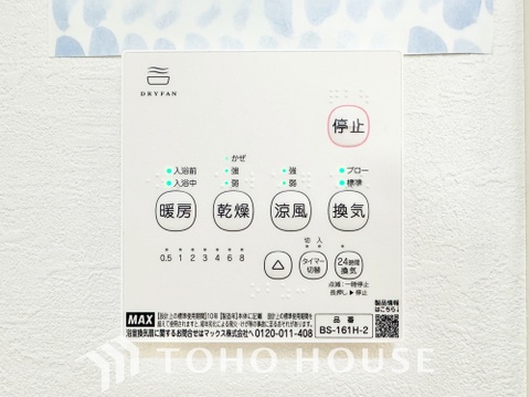 浴室暖房乾燥機を完備しており、雨天時のお洗濯も安心です。