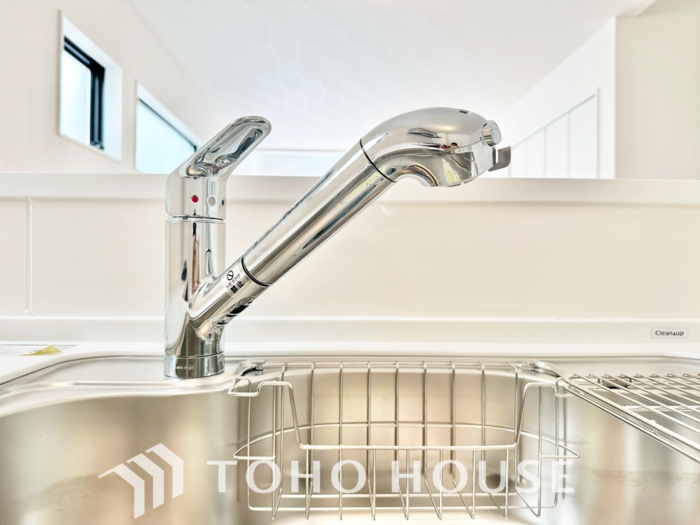 浄水器ボタンひとつで浄水と原水に切り替えられる浄水器一体型水洗を使用。