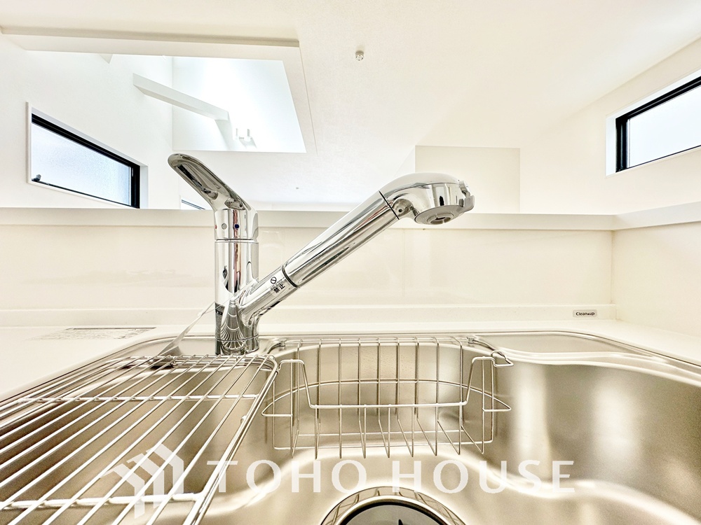 浄水器ボタンひとつで浄水と原水に切り替えられる浄水器一体型水洗を使用。