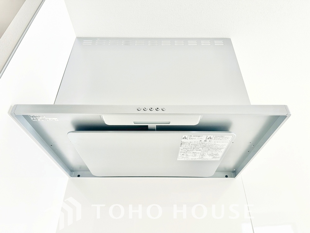 キッチンの換気扇はスタイリッシュなデザインで、日々のお手入れもラクラクな仕様となっております。