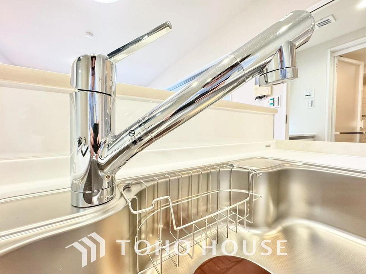 「浄水器一体型水栓」ボタンひとつで浄水と原水に切り替えられる浄水器一体型水洗を使用。お米を炊いたりする際には浄水機能をつかうこともできて、人気の商品です。