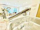 浄水器ボタンひとつで浄水と原水に切り替えられる浄水器一体型水栓を使用。