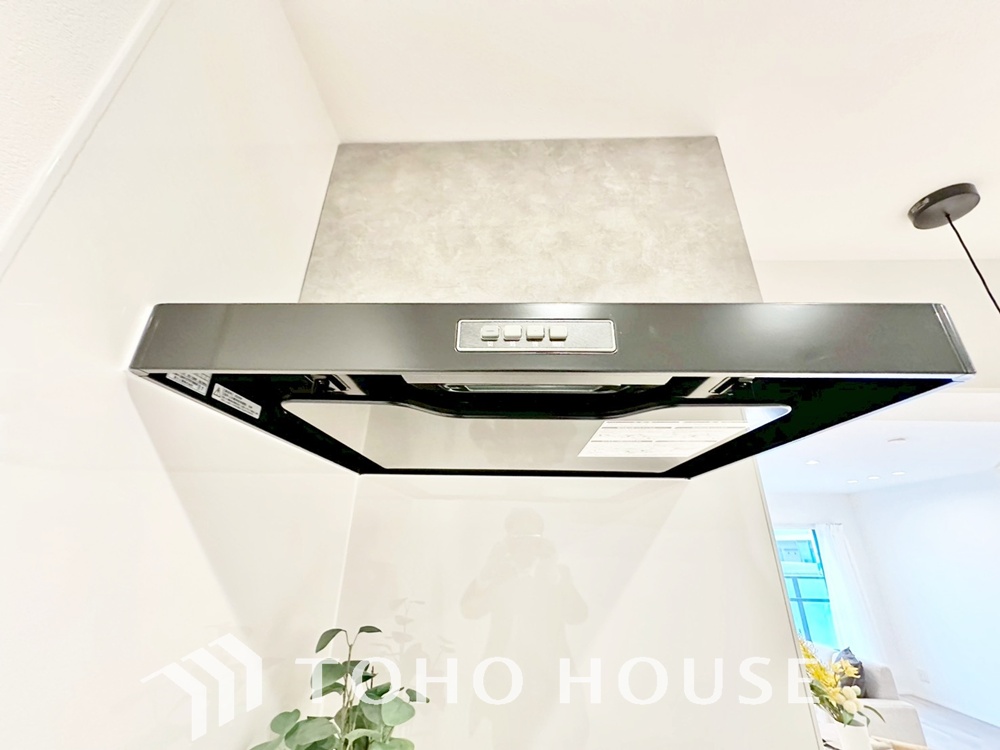 見た目すっきりのスリムタイプのレンジフード。掃除のし易さも◎です。