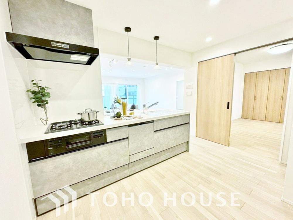 充実した収納スペースを搭載したシステムキッチンは、日々の家事がはかどります。