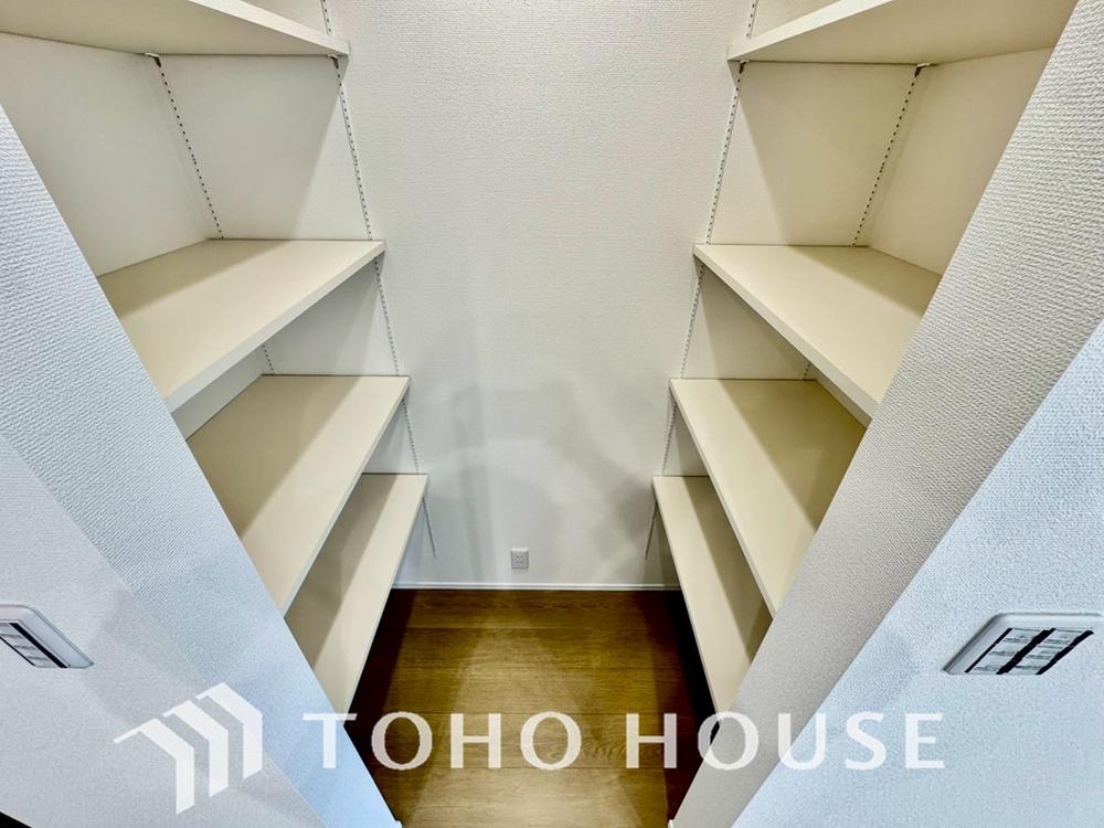 買い置きした日用品や食品等を収納する場所として、最適なキッチンスペースのパントリー収納がございます。