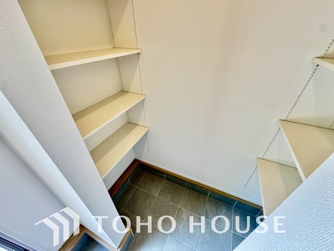 人を迎え入れる最初の場所だからこそ、清潔感が大事。ゆとりあるシューズインクロークも設置しました。