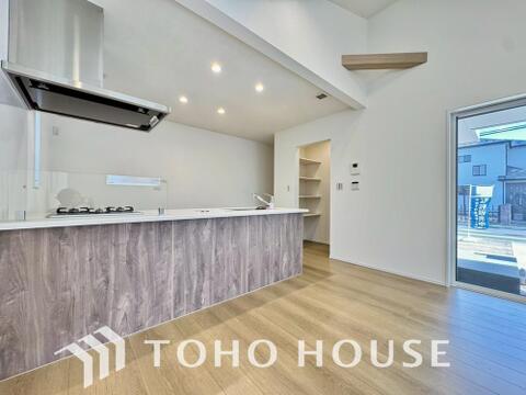 夫婦そろってキッチンに立っても調理がしやすく余裕の広さ。家事をしながら会話も弾みます。