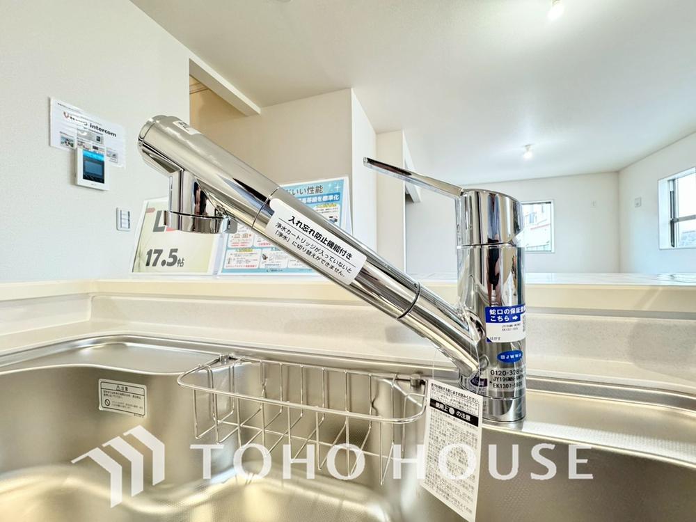 浄水器ボタンひとつで浄水と原水に切り替えられる浄水器一体型水栓を使用。