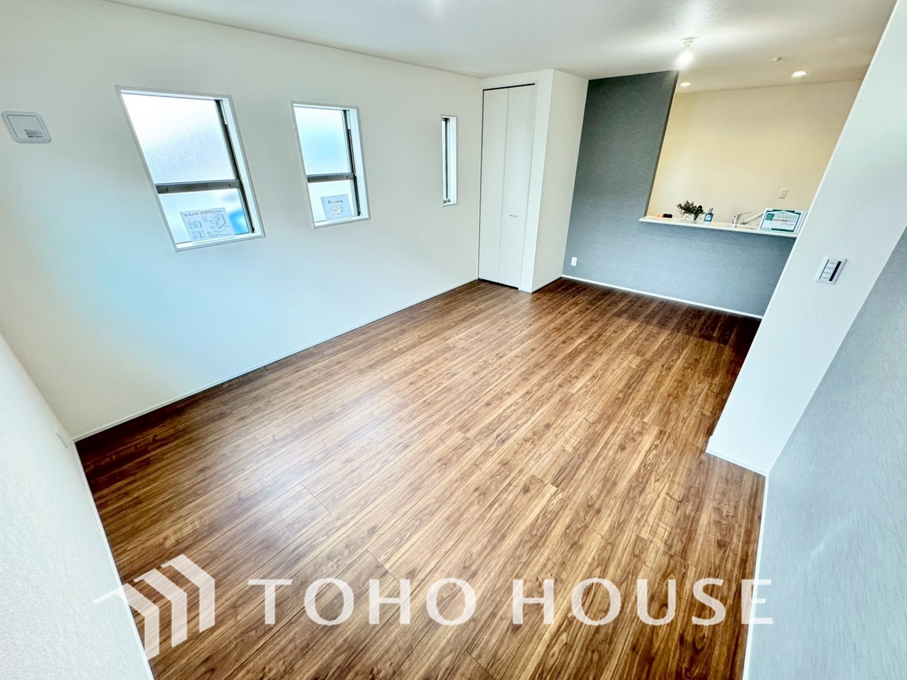広いLDKでは家族が集まり一緒の時間を過ごせる工夫がされております。