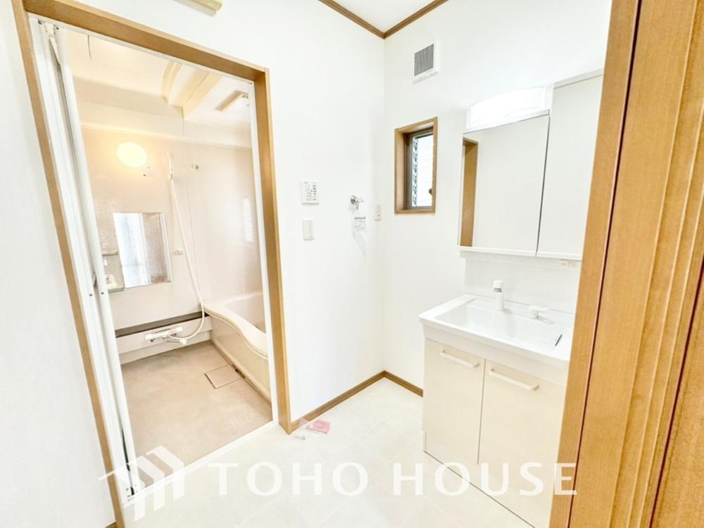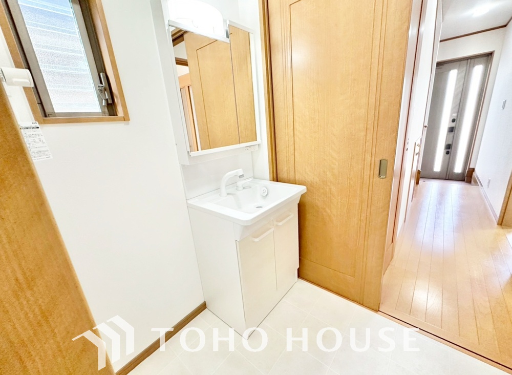 身だしなみのチェックがしやすい大きな鏡、下には収納がたっぷり。スッキリとした空間を演出いたします。