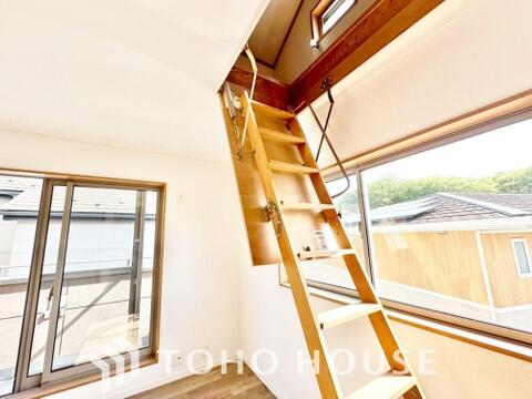 収納力がグンとアップする小屋裏収納付き。季節物、使用頻度の低いものをしまっておくのに便利です。