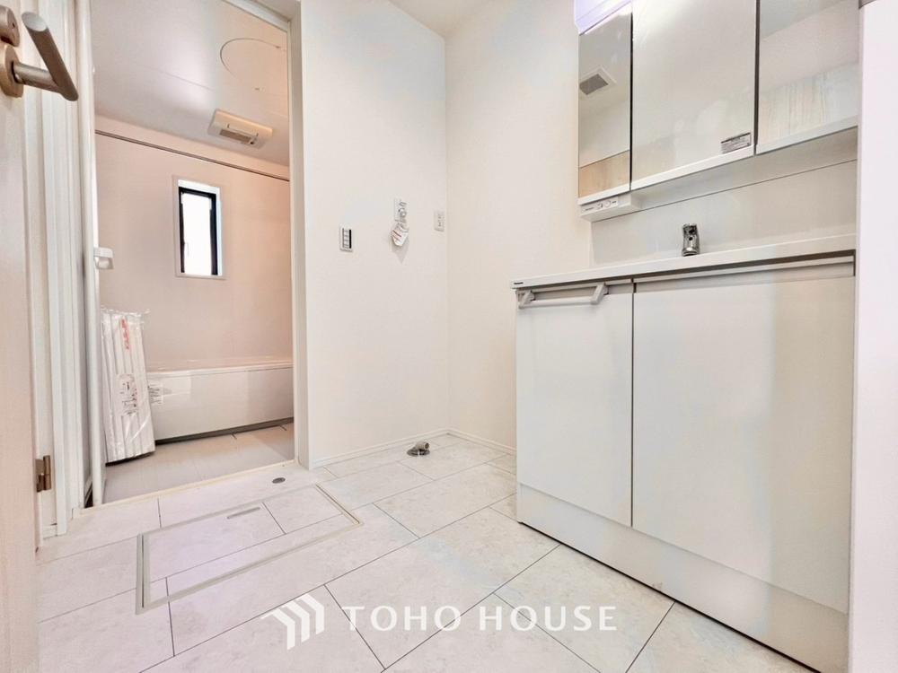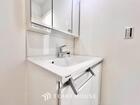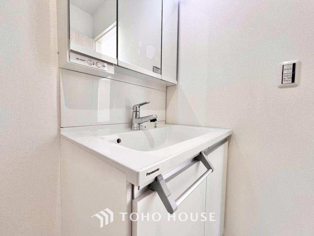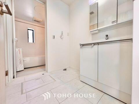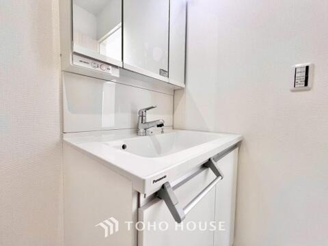身だしなみのチェックがしやすい大きな鏡、下には収納がたっぷり。スッキリとした空間を演出いたします。