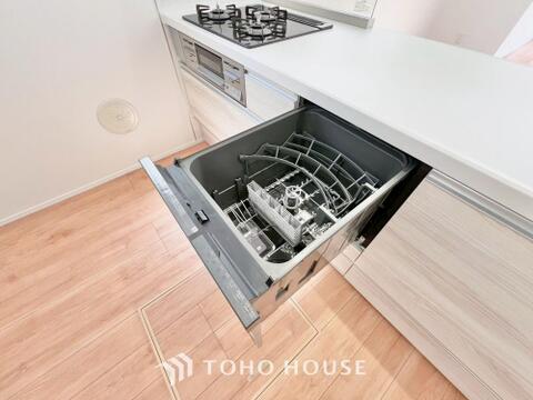 「ビルトインタイプ食器洗乾燥機」通常の手洗いでは使用出来ないほど高温のお湯や高圧水流を使うことにより汚れを効果的に落とすことができる。
