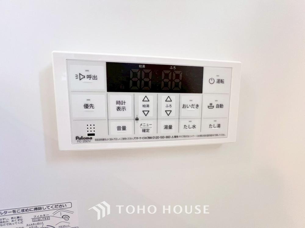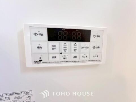 お風呂場と台所に操作リモコンがあり、キッチン近くにある給湯リモコンは、お料理の最中でもリビングで寛いでいるなかでもボタン一つで簡単に沸かせて便利ですね。