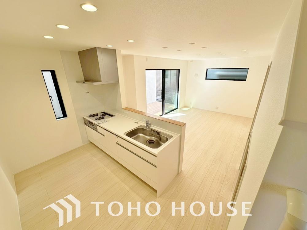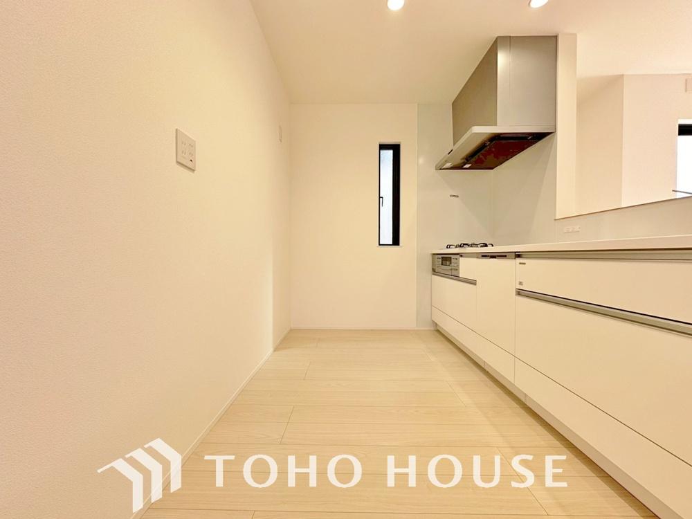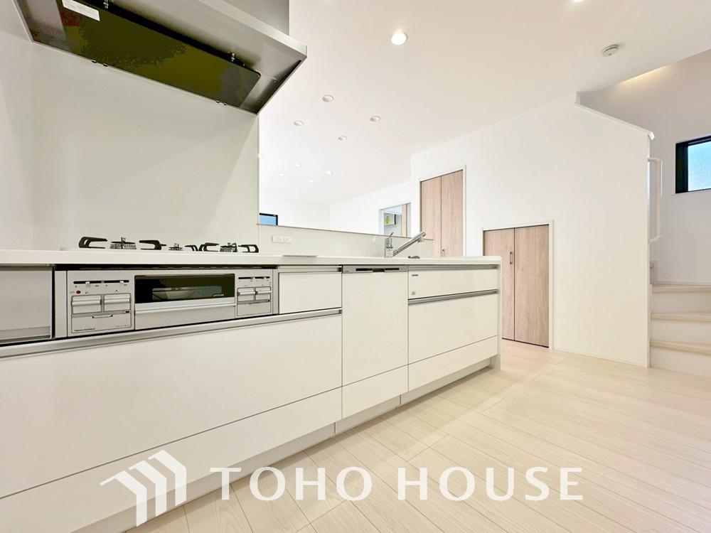 家族みんなでゆったりと調理や食事の準備ができる十分な広さを確保した、快適なキッチンスペース。
