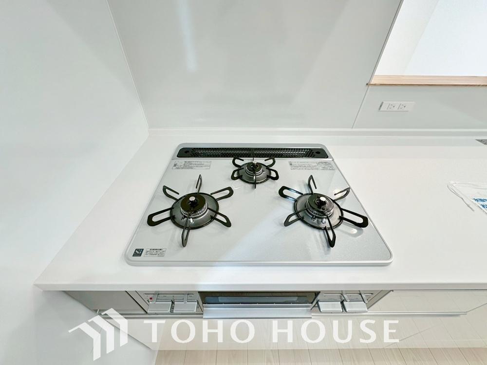 3口コンロは一度に複数のお料理を作ることができるメリットがあります。毎日のキッチンタイムを効率よく。