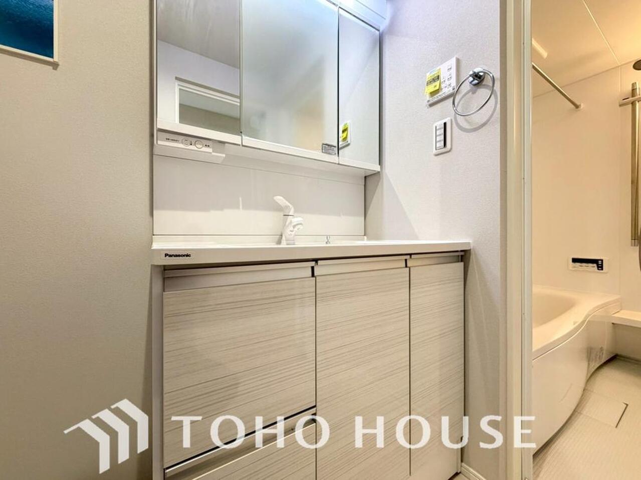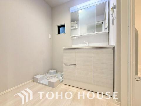 お家の中でも特にプライベートスペースとなる洗面所は、洗濯場所と浴室を同じ空間でまとめております。