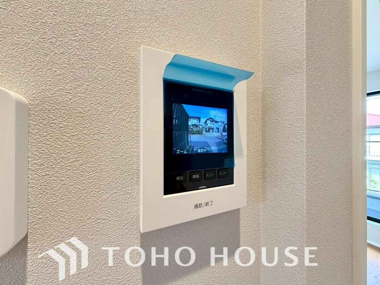 誰が来てもわかる様にモニター付きインターホンを設置。家事導線を考慮した個所に設置し、防犯性と利便性に優れ快適と安らぎを合わせた優しい設計。