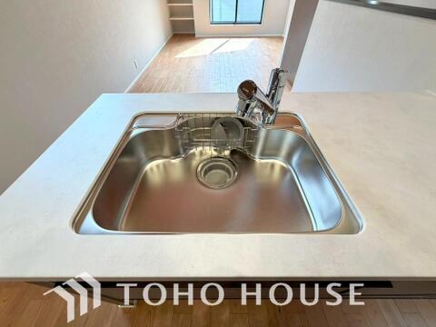 夫婦そろってキッチンに立っても調理がしやすく余裕の広さ。家事をしながら会話も弾みます。