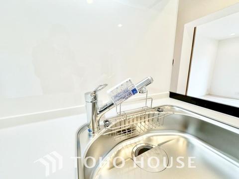 浄水器ボタンひとつで浄水と原水に切り替えられる浄水器一体型水栓を使用。