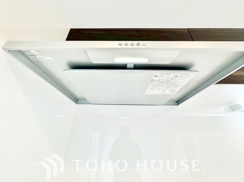 見た目すっきりのスリムタイプのレンジフード。掃除のし易さも◎です。