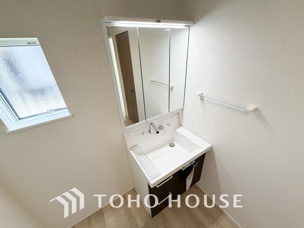 お家の中でも特にプライベートスペースとなる洗面所は、洗濯場所と浴室を同じ空間でまとめております。