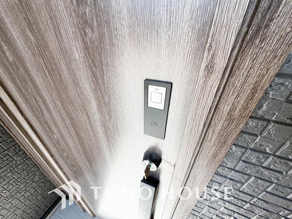 「ICチップを用いたカードやボタンなどで玄関扉の鍵の施錠・解錠が出来る設備。