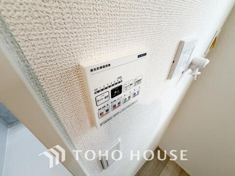 お風呂場と台所に操作リモコンがあり、キッチン近くにある給湯リモコンは、お料理の最中でもリビングで寛いでいるなかでもボタン一つで簡単に沸かせて便利ですね。