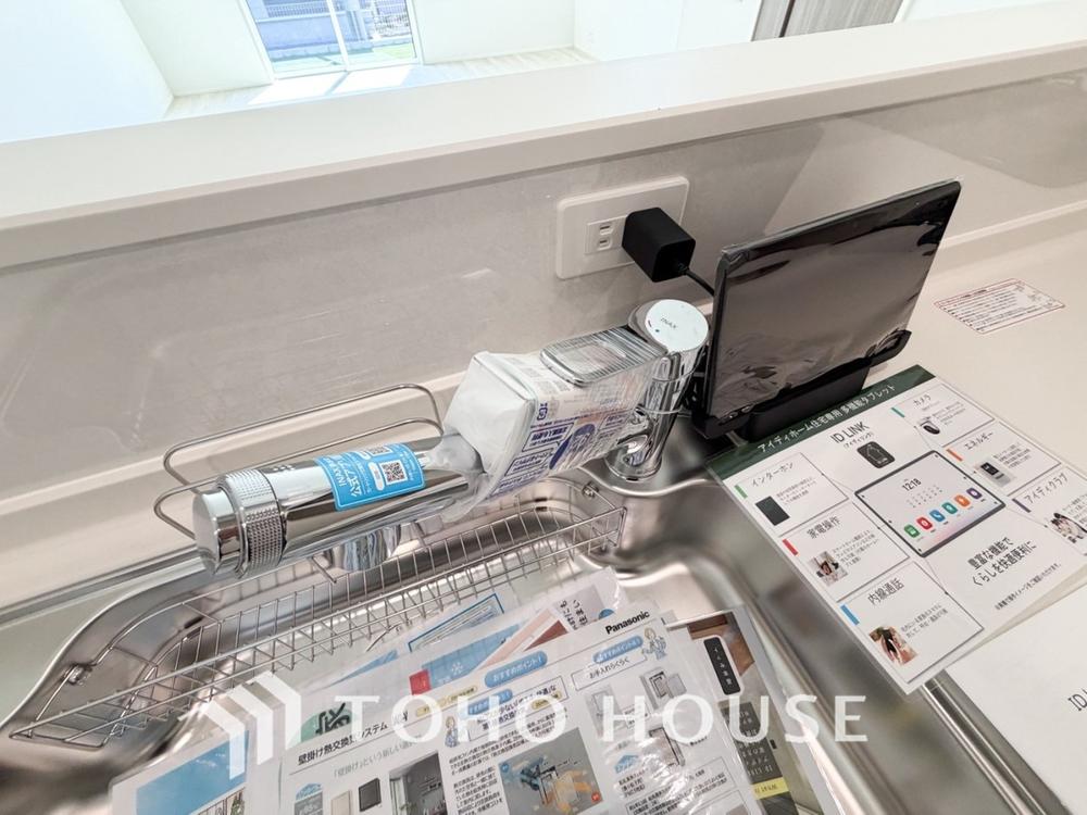 誰が来てもわかる様にモニター付きインターホンを設置。家事導線を考慮した個所に設置し、防犯性と利便性に優れ快適と安らぎを合わせた優しい設計。