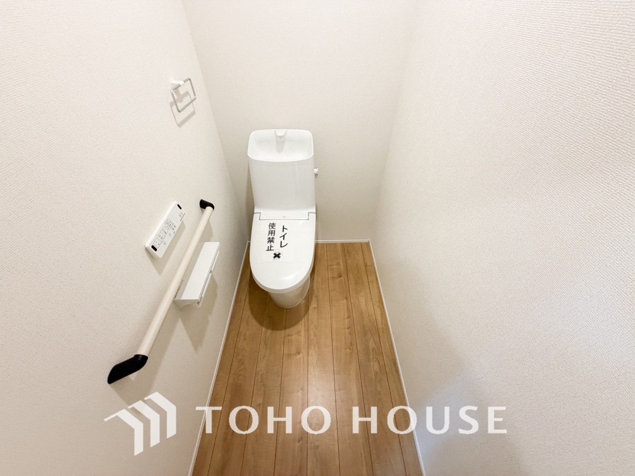 十分な広さと清潔感のあるカラーで纏まったおトイレ。時間に余裕とゆとりを持たせます。