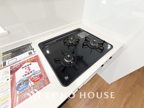 3口コンロは一度に複数のお料理を作ることができるメリットがあります。毎日のキッチンタイムを効率よく。