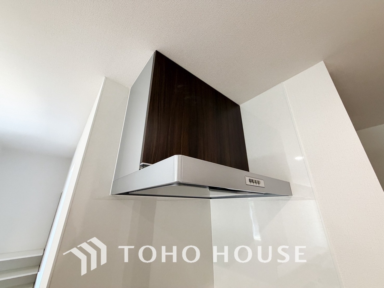 昨今主流のスリムタイプのレンジフード。スタイリッシュな見た目からインテリアとしても人気がある型です。