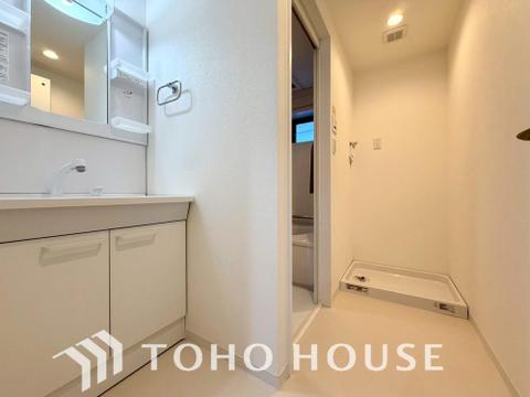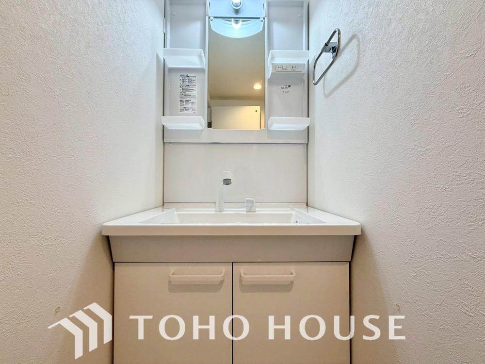 身だしなみのチェックがしやすい大きな鏡、下には収納がたっぷり。スッキリとした空間を演出いたします。