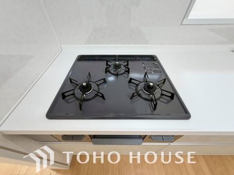 3口コンロは一度に複数のお料理を作ることができるメリットがあります。毎日のキッチンタイムを効率よく。