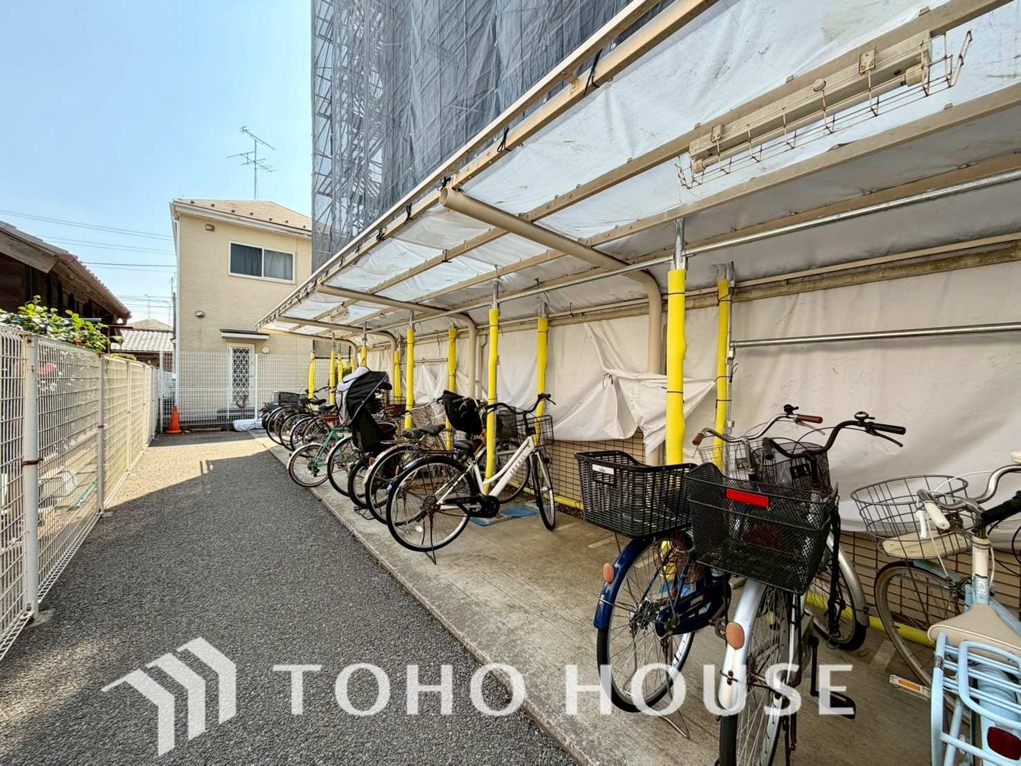 共用部の駐輪場は雨除けが設置されています。きちんと整理され管理の行き届いた印象です。