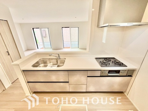 夫婦そろってキッチンに立っても調理がしやすく余裕の広さ。家事をしながら会話も弾みます。