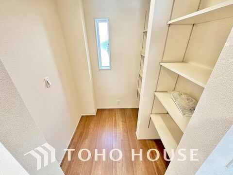キッチン横にはパントリーを完備。ついつい買いすぎてしまった日用品や食料品のストックなどに。