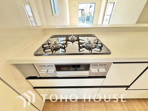 3口コンロは一度に複数のお料理を作ることができるメリットがあります。毎日のキッチンタイムを効率よく。