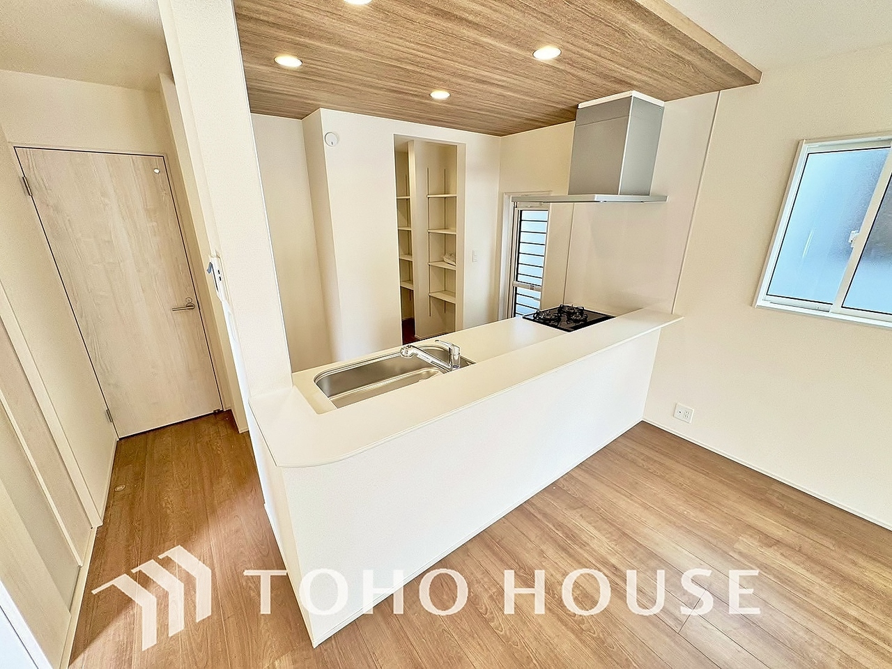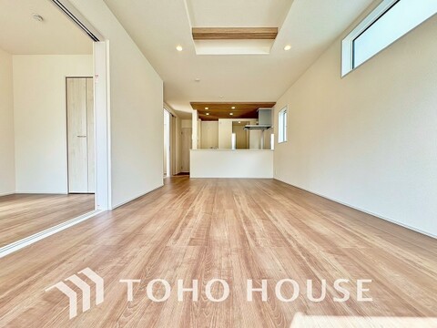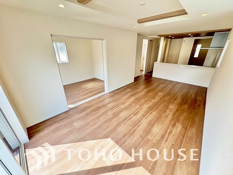リビングで遊ぶお子様や寛ぐ家族と対話しをしながら家事を行えるのが自慢のキッチンスペースです。