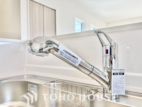 浄水器ボタンひとつで浄水と原水に切り替えられる浄水器一体型水栓を使用。