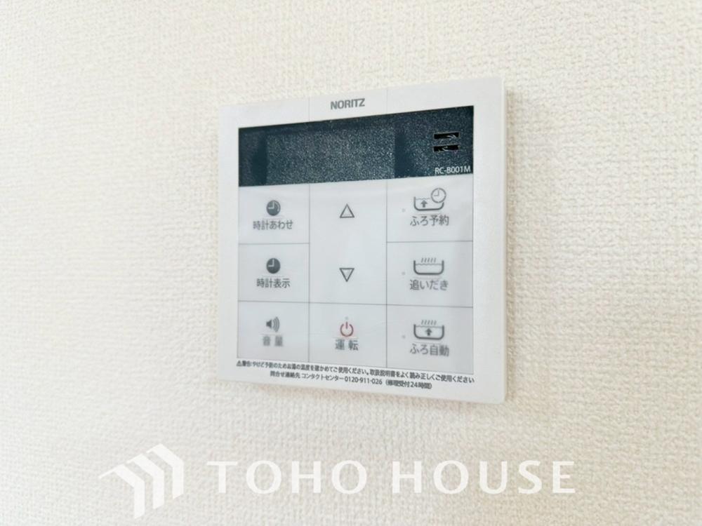お風呂場と台所に操作リモコンがあり、キッチン近くにある給湯リモコンは、お料理の最中でもリビングで寛いでいるなかでもボタン一つで簡単に沸かせて便利ですね。