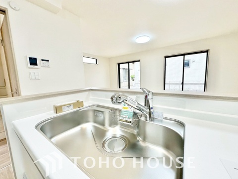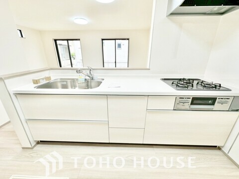 夫婦そろってキッチンに立っても調理がしやすく余裕の広さ。家事をしながら会話も弾みます。