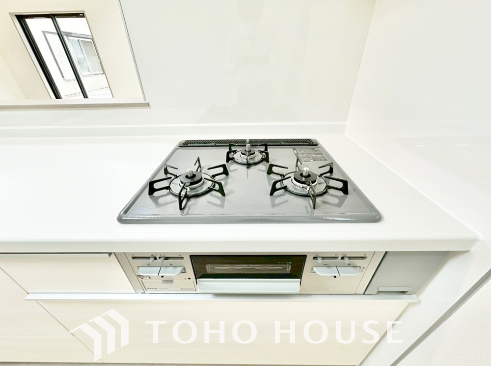 3口コンロは一度に複数のお料理を作ることができるメリットがあります。毎日のキッチンタイムを効率よく。