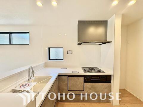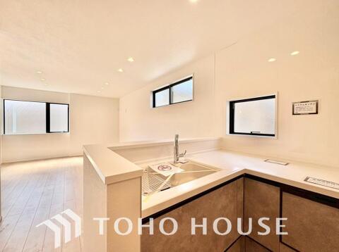 夫婦そろってキッチンに立っても調理がしやすく余裕の広さ。家事をしながら会話も弾みます。