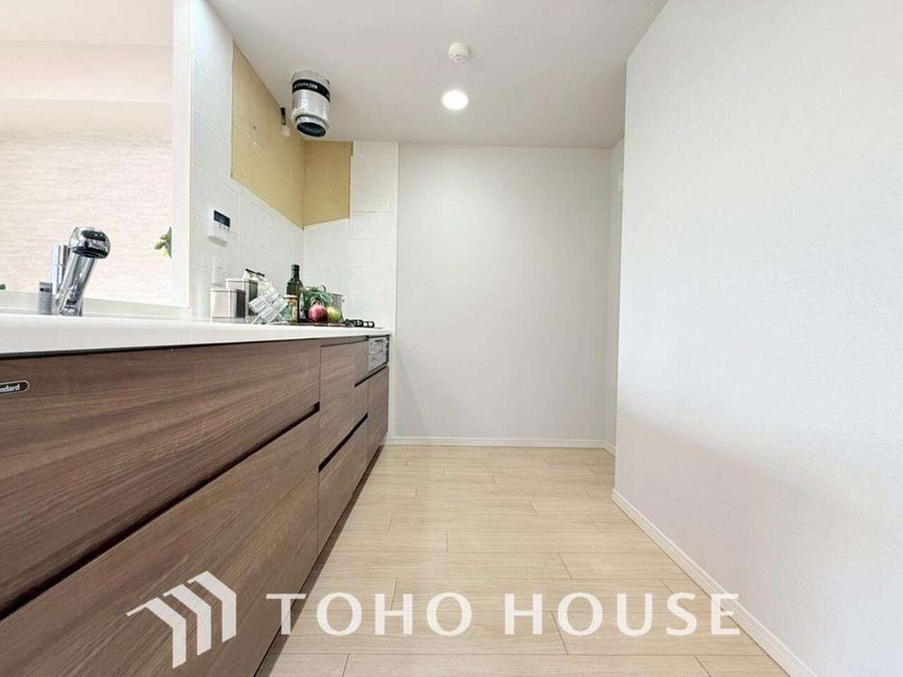 大型の冷蔵庫も配置できる広々としたキッチンスペースでお料理や家事をスムーズに進めることができます。