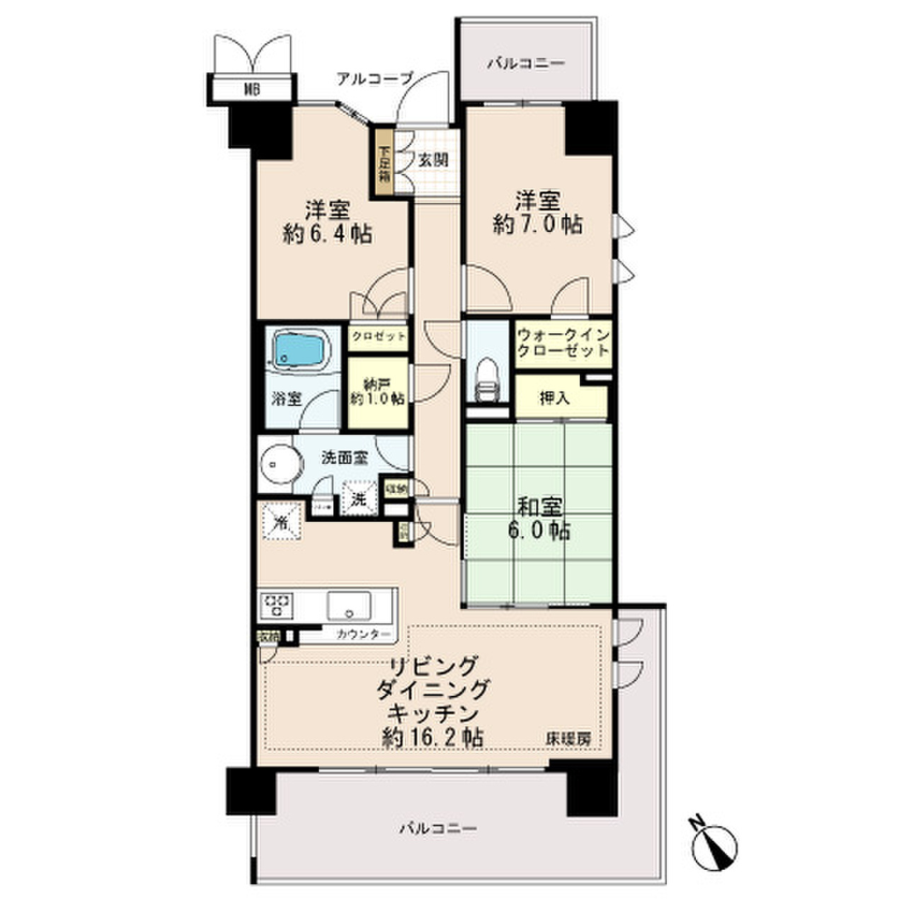 | 間取り | 3LDK | 専有面積 | 81.42m²(壁芯) |